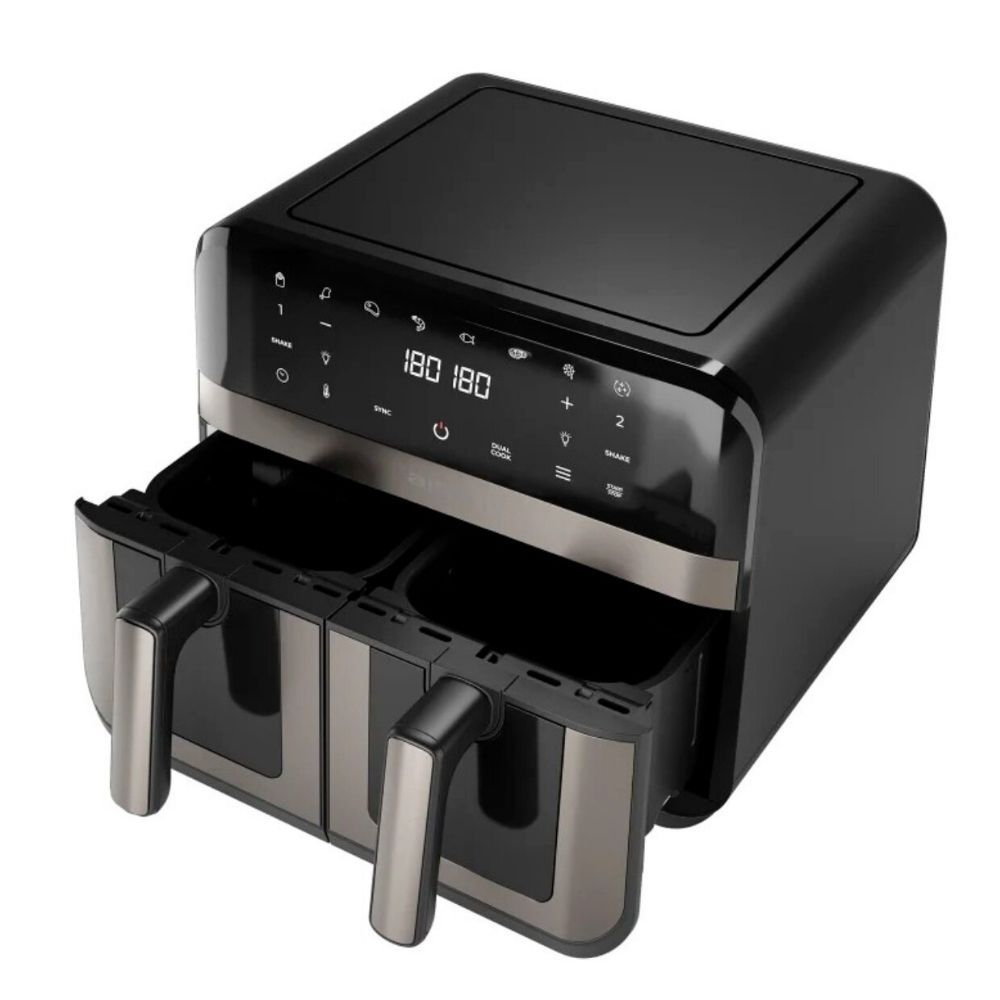Moc 2400 W pozwala osiągnąć temperaturę do 200 °C, a silne grzanie gwarantuje efekt chrupiących frytek i idealnie wypieczonego mięsa – szybciej niż w tradycyjnych piekarnikach