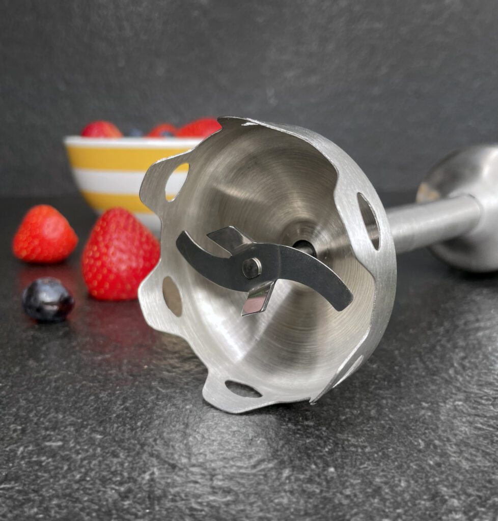 Profilowany uchwyt zapewnia pewny chwyt i komfortową obsługę, nawet przy dłuższej pracy. Kompaktowa forma (tylko 39,5 cm długości) sprawia, że blender wygodnie przechowasz w każdej kuchennej szufladzie.