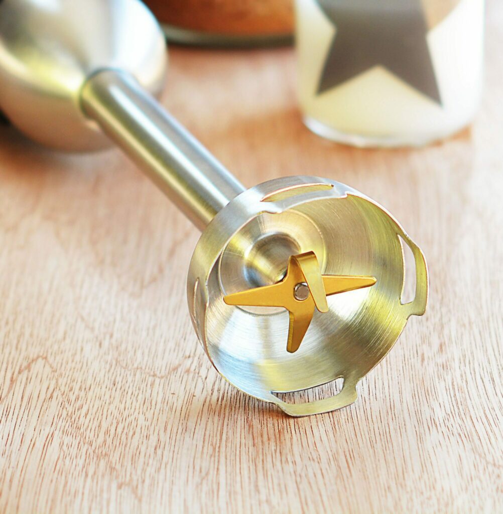 Poczwórne ostrze pokryte tytanem oraz specjalnie wyprofilowana nasadka rozdrabniająca zapewniają biegły przepływ składników, co przekłada się na płynne miksowanie bez „zakleszczeń”. W rezultacie możesz swobodnie pracować z twardszymi składnikami jak warzywa korzeniowe czy orzechy.