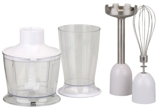 - Akcesoria: kubek z miarką, rozdrabniacz, ubijak, malakser, nasadka do puree