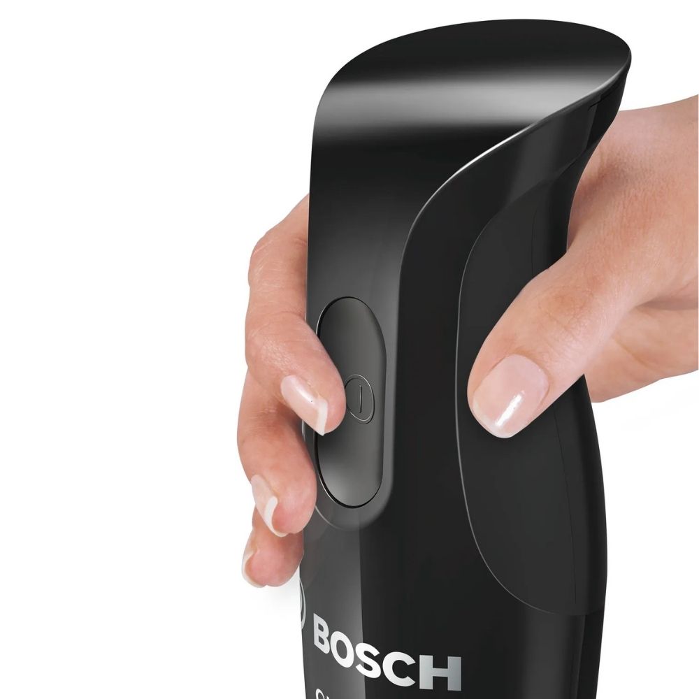 Bosch MSM2610B CleverMixx to poręczny blender ręczny z mocnym silnikiem 600 W i wytrzymałą, demontowaną stopą ze stali nierdzewnej. Jego procedura działania na jednym przycisku oraz ergonomiczna konstrukcja sprawiają, że blendowanie staje się naprawdę wygodne