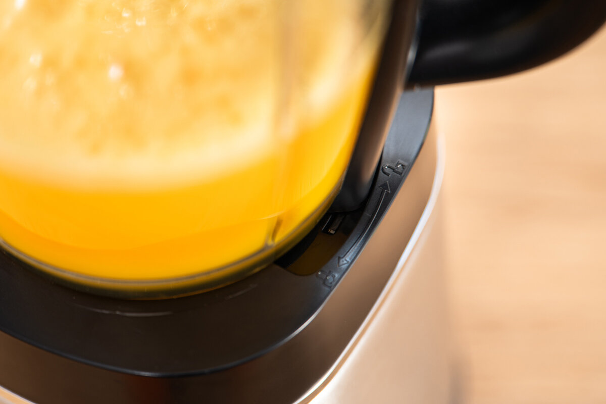 Urządzenie posiada szklany kielich o pojemności 1,75 litra, który pozwala na przygotowanie większych ilości koktajli, zup kremów czy sosów jednocześnie. Szkło jest odporne na zarysowania i nie absorbuje zapachów, co gwarantuje higienę oraz trwałość użytkowania.