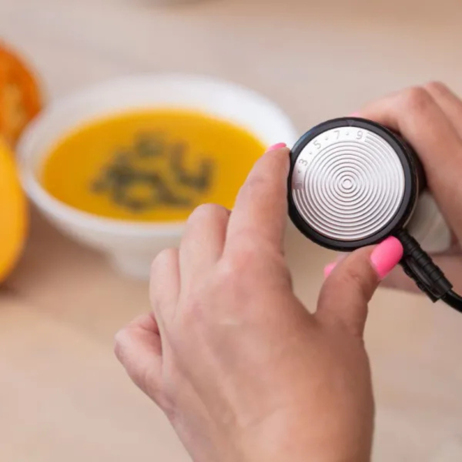 Blender ręczny to praktyczne urządzenie, które pozwala na szybkie miksowanie, rozdrabnianie i ubijanie składników bezpośrednio w naczyniach. Model MBL-34M łączy w sobie wysoką moc z uniwersalnymi akcesoriami, co czyni go nieocenionym w przygotowywaniu zup, sosów, koktajli czy deserów.
