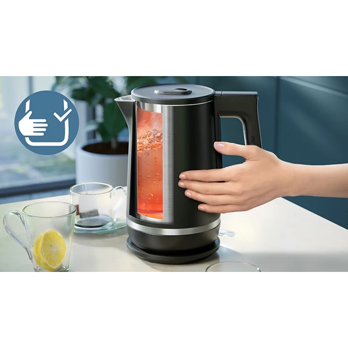 Wbudowany kontroler Strix automatycznie wyłącza czajnik po zagotowaniu wody lub gdy jest pusty, chroniąc urządzenie przed uszkodzeniem i zwiększając bezpieczeństwo użytkowania.