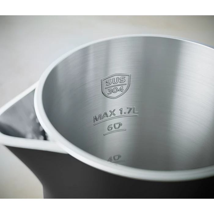 Wnętrze czajnika wykonane jest z wysokiej jakości stali nierdzewnej klasy spożywczej (SUS304), co zapewnia maksymalną higienę i odporność na korozję. Szeroki otwór ułatwia czyszczenie i napełnianie urządzenia.