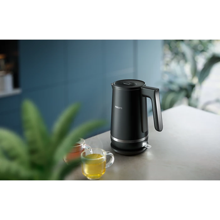 Czajnik elektryczny Philips HD9395/90 z serii 5000 to połączenie nowoczesnego designu z zaawansowanymi funkcjami, które zapewniają komfort i bezpieczeństwo podczas codziennego użytkowania. Dzięki podwójnym ściankom izolacyjnym oraz wnętrzu ze stali nierdzewnej, urządzenie gwarantuje szybkie i efektywne gotowanie wody przy jednoczesnym zachowaniu chłodnej powierzchni zewnętrznej.