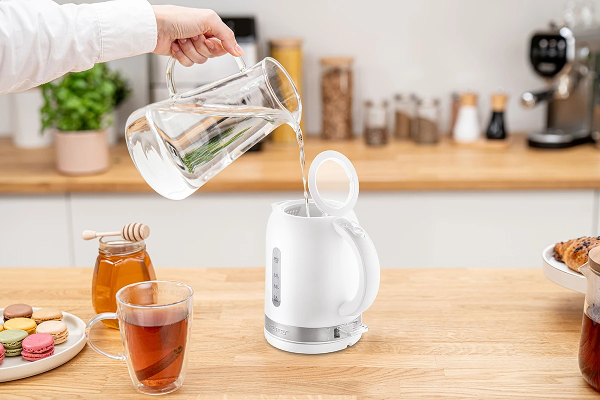 Regularnie odkamieniaj wnętrze delikatnym środkiem i płucz czystą wodą. Napełniaj czajnik tylko potrzebną ilością – to oszczędność energii i szybsze gotowanie. Czyść zewnętrzne elementy miękką, wilgotną ściereczką.