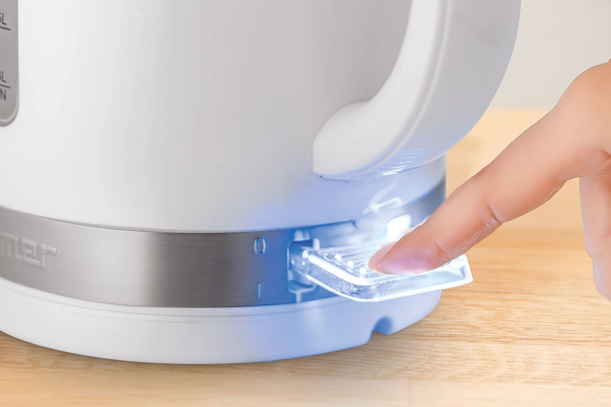 Czytelny wskaźnik poziomu wody pomaga odmierzyć idealną ilość, a podświetlany przełącznik informuje o pracy urządzenia. Masz pełną kontrolę – bez marnowania czasu i energii.