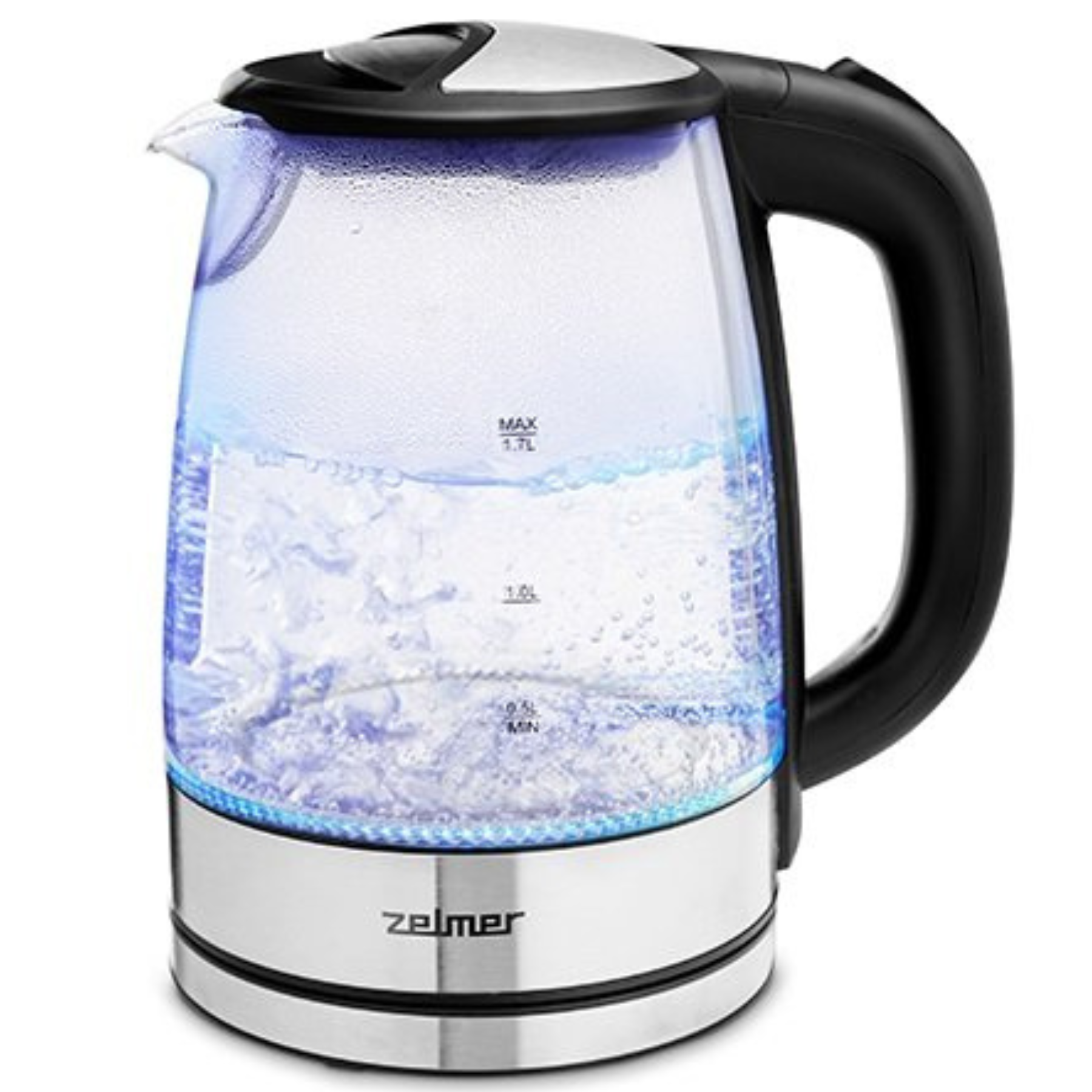 - Funkcje dodatkowe: Baza obrotowa, Dwustronny wskaźnik poziomu wody, Grzałka płaska/ukryta, Lampka kontrolna, Podświetlenie LED, Schowek na przewód