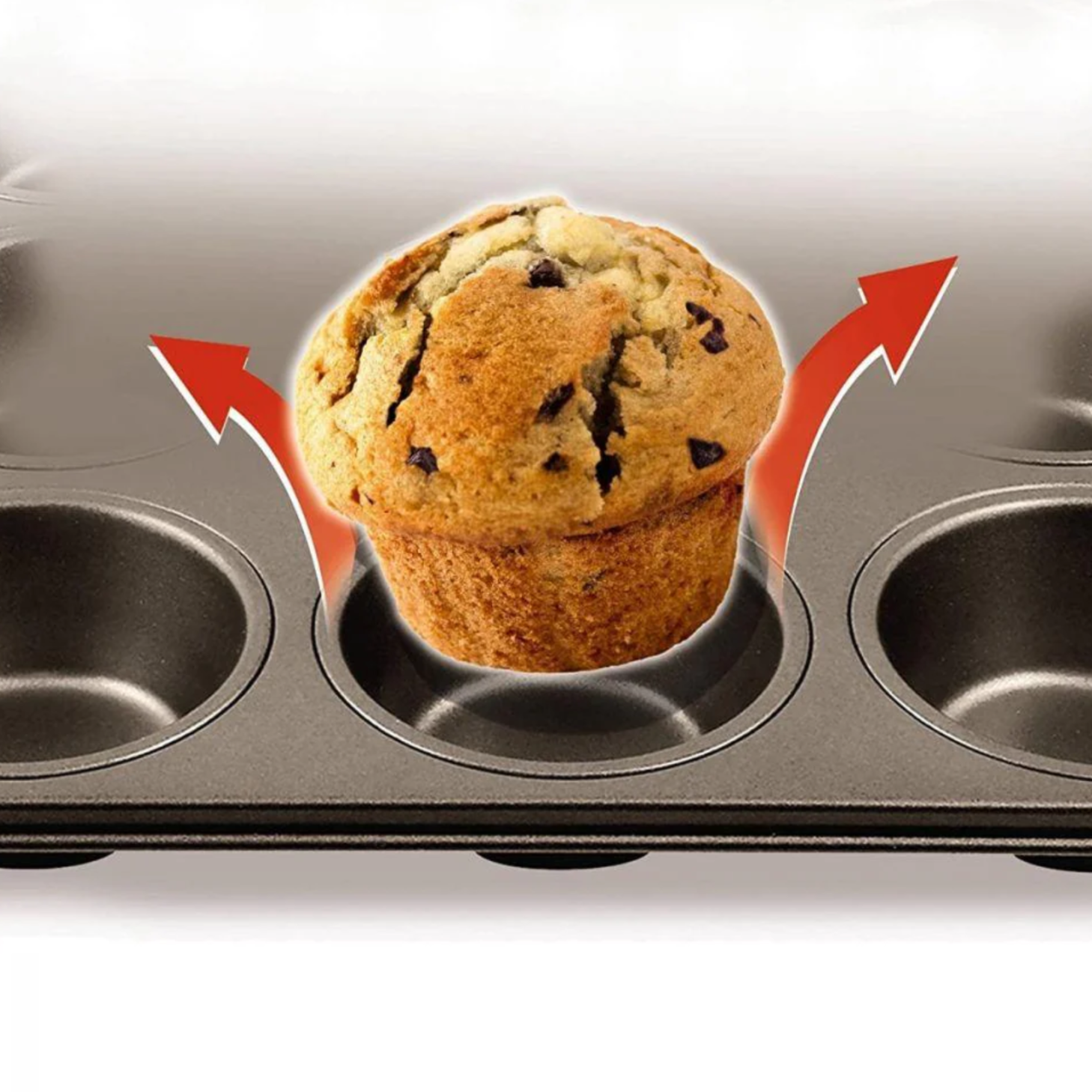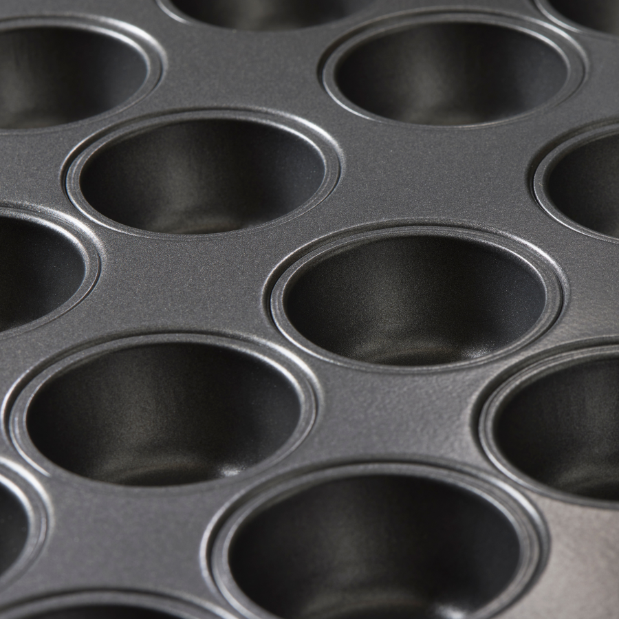 Powłoka zapobiegająca przywieraniu: Specjalna teksturowana powierzchnia ułatwia wyjmowanie muffinów i babeczek bez ryzyka uszkodzenia wypieków.