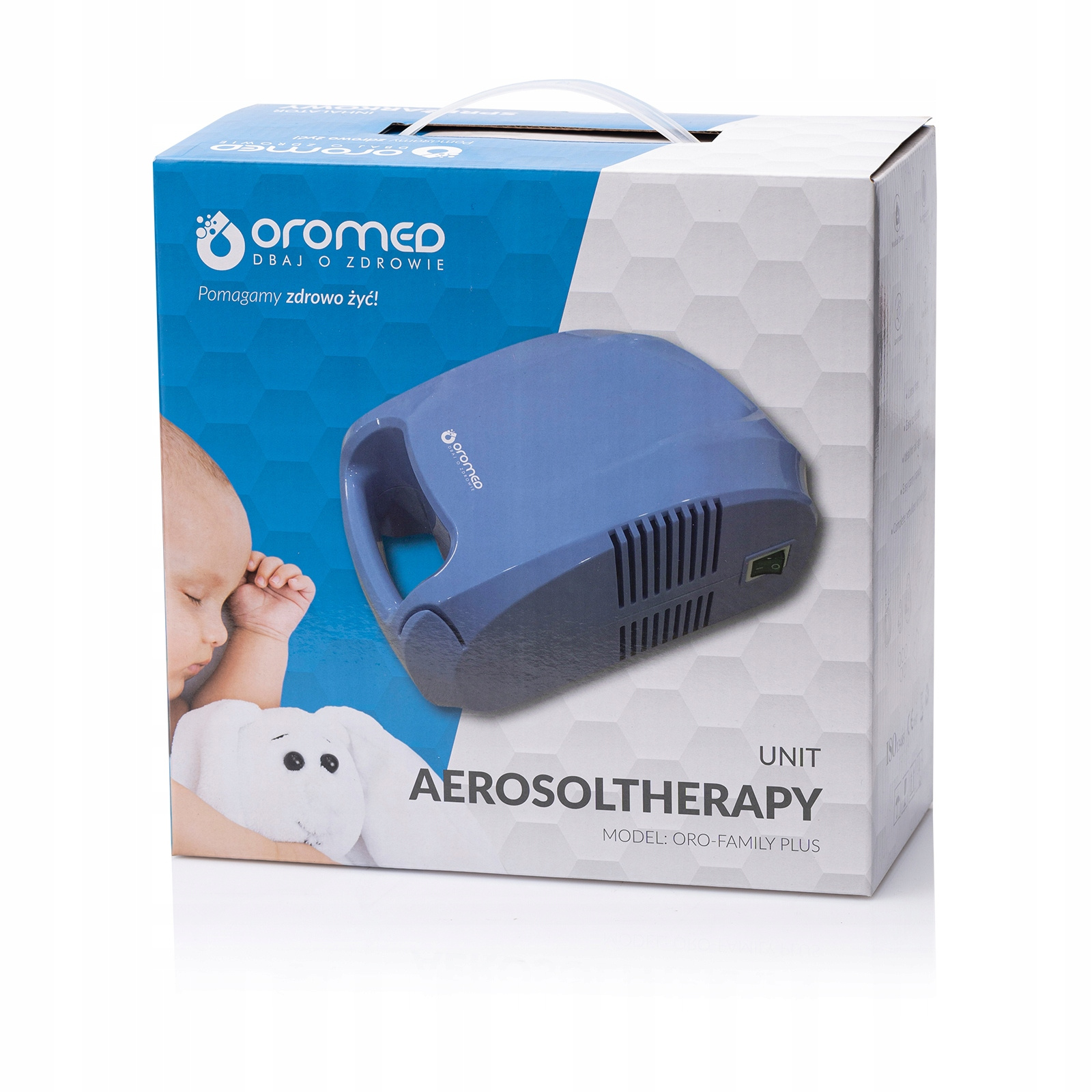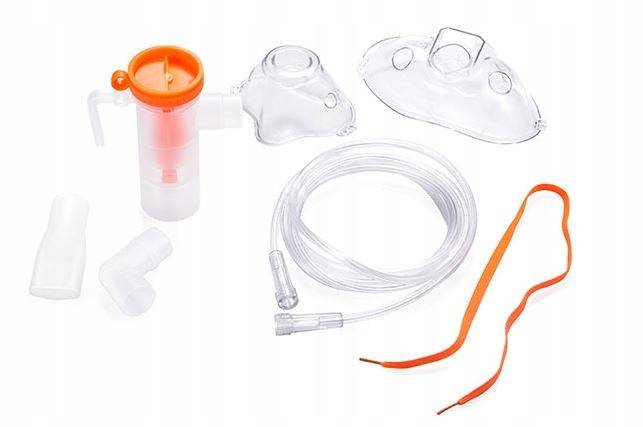 - Akcesoria: Maski (dzieci/dorośli), końcówka do nosa, końcówka doustna, przewód powietrzny 2 m, zapasowe filtry