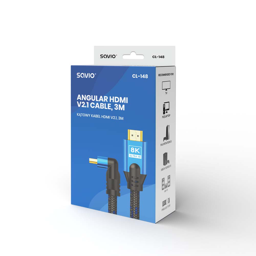 Kabel Savio Hdmi V2.1 Kąt Miedź (1153930)
