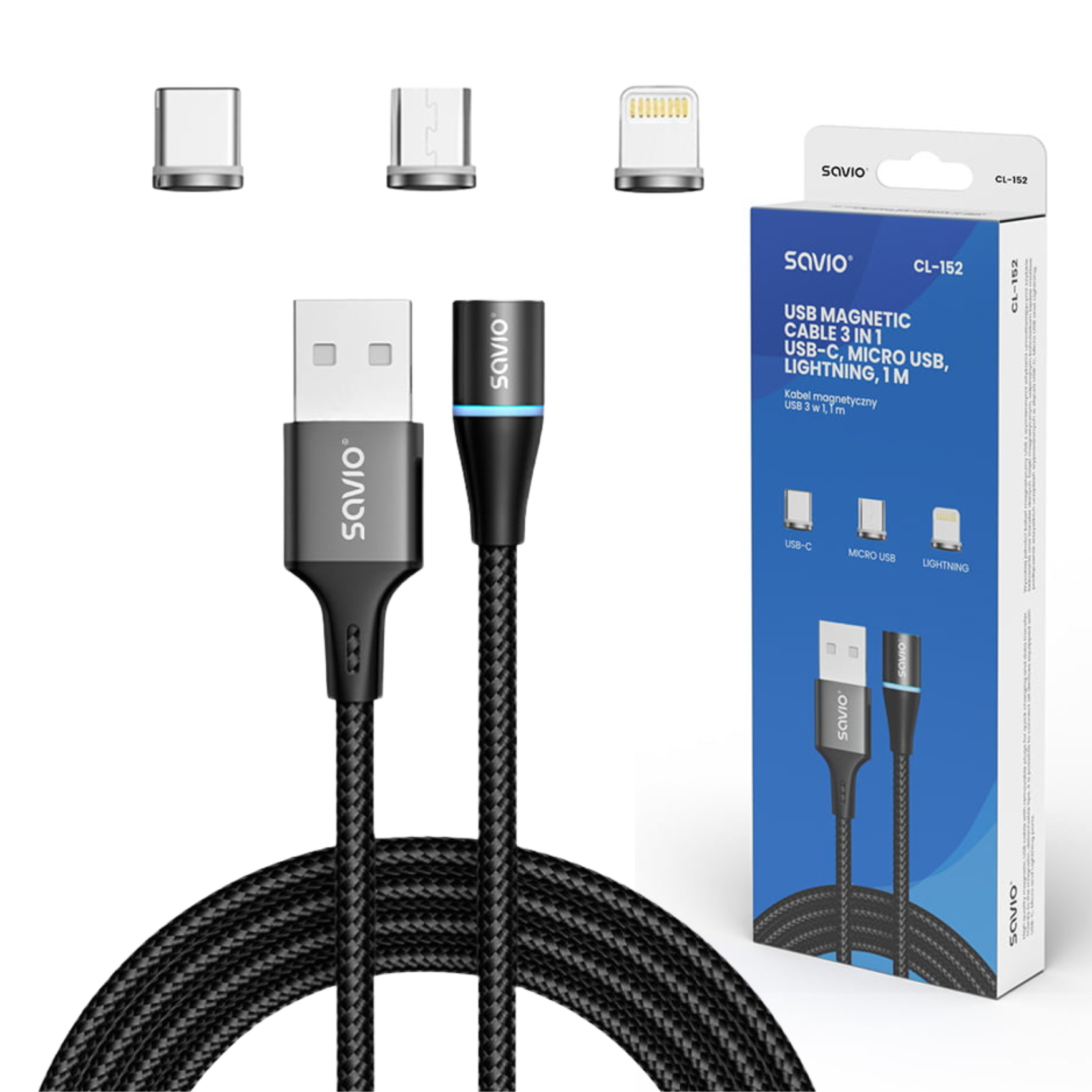Kabel Savio Magnet Usb-Usb Typ C Micro (1153939)