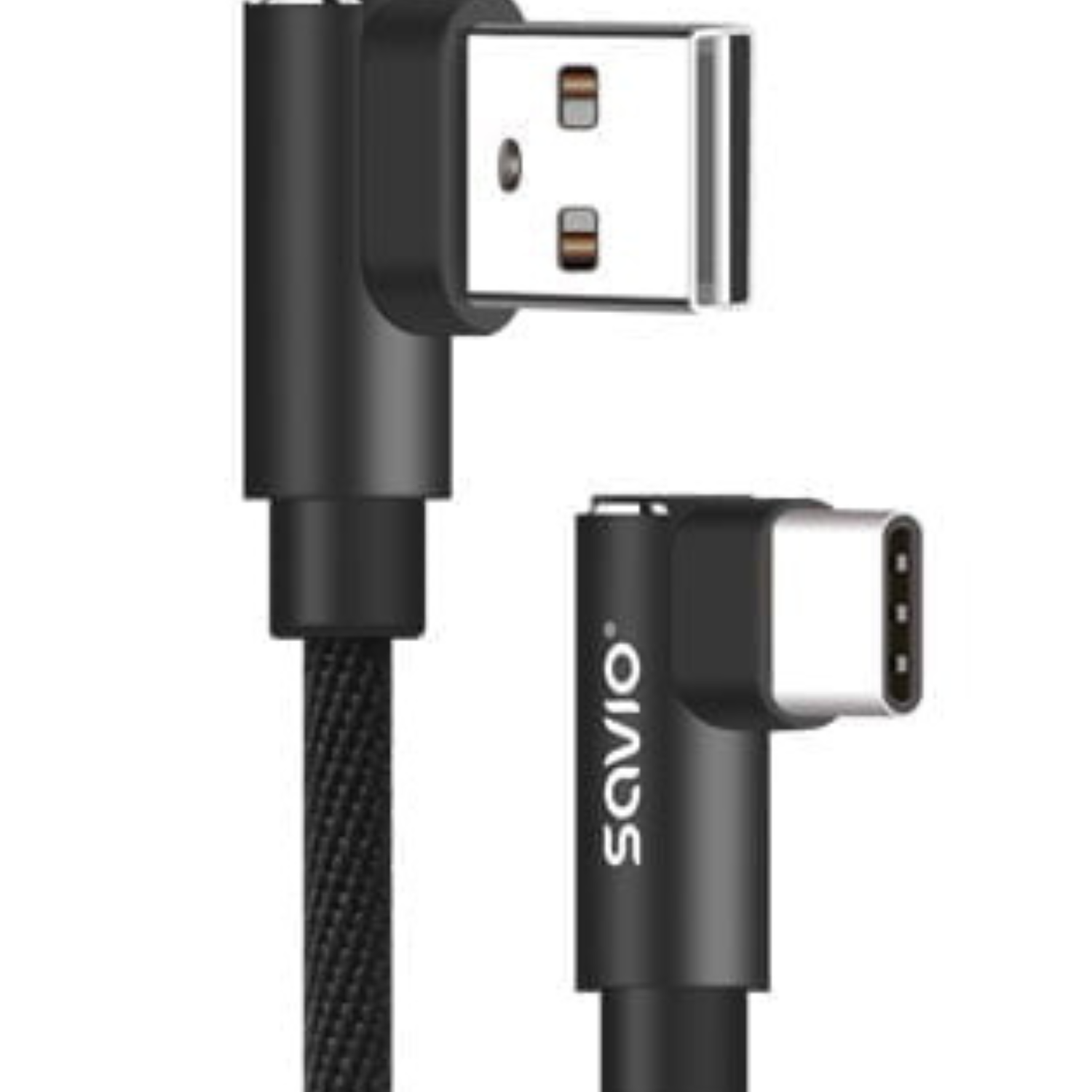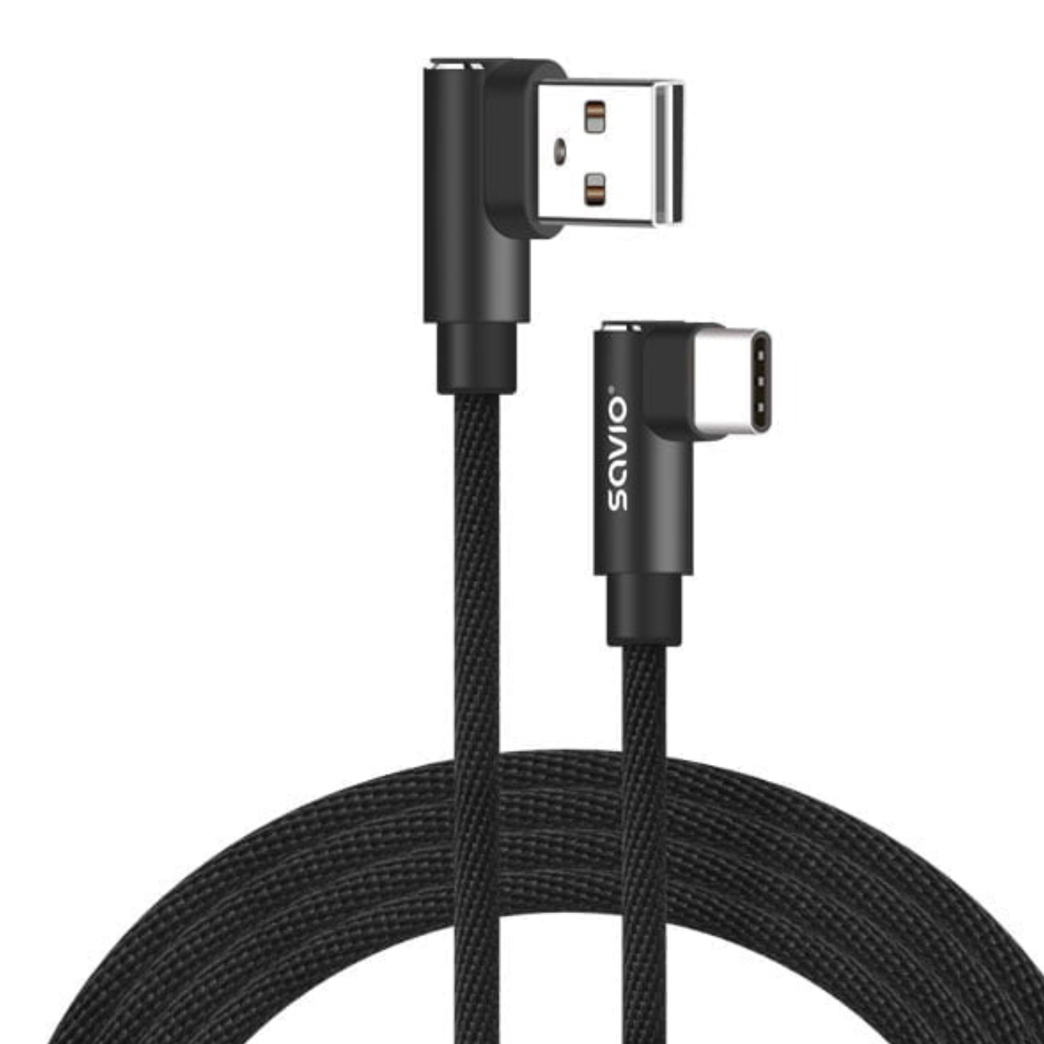 Kabel USB CL-163 SAVIO 1m kątowy dwustronny USB-C nylon oplot 2.4A Sync