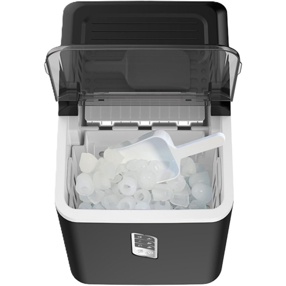 Wyposażona w panel sterowania z diodami LED oraz szufelkę i tackę na lód, kostkarka jest łatwa w obsłudze. Zbiornik o pojemności 1,5 l zapewnia długą pracę bez konieczności częstego uzupełniania wody.