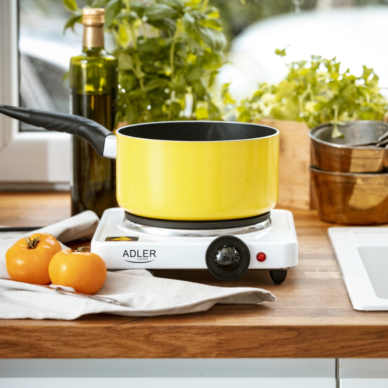 Adler AD 6503 to jednopalnikowa kuchenka elektryczna, która doskonale sprawdzi się w warunkach ograniczonej przestrzeni lub jako urządzenie pomocnicze. Kompaktowa i łatwa w obsłudze, jest idealnym rozwiązaniem do domków letniskowych, mieszkań typu studio, biur, pokojów pracowniczych oraz jako awaryjna alternatywa w razie niedostępności głównej kuchenki. Dzięki solidnej obudowie i płynnej regulacji temperatury, umożliwia komfortowe przygotowanie prostych posiłków oraz ich podgrzewanie.