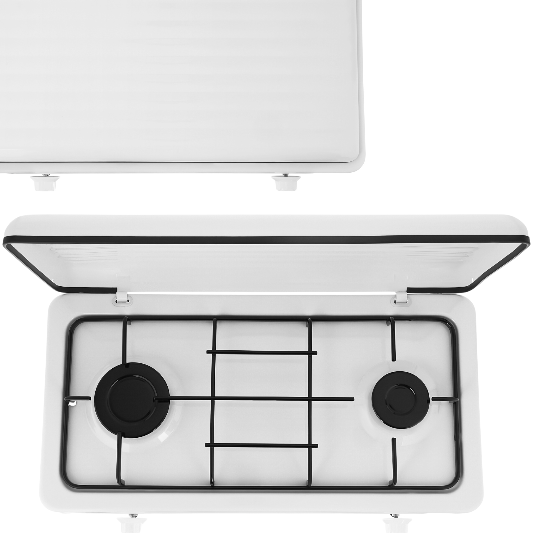 Kuchenka wyposażona jest w metalową pokrywę, która chroni palniki podczas transportu oraz nieużywania. Dodatkowo jej konstrukcja umożliwia łatwe czyszczenie, co zwiększa komfort użytkowania.