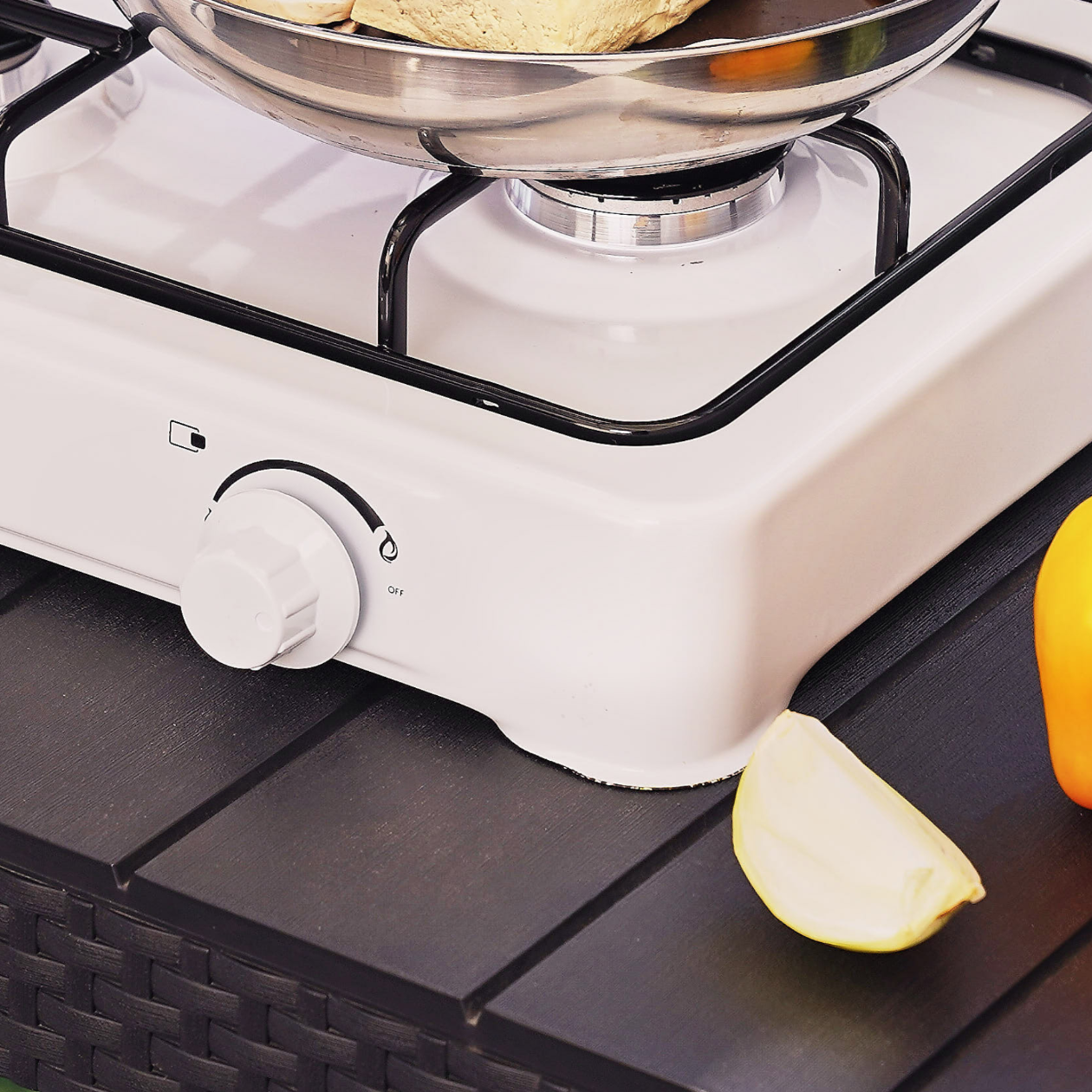 Kuchenka jest zasilana butlą gazową LPG, co sprawia, że jest niezwykle wygodna w użytkowaniu na zewnątrz. Dzięki temu nie trzeba martwić się o dostęp do elektryczności, co czyni ją idealnym wyborem na kempingi, działki czy ogrody.