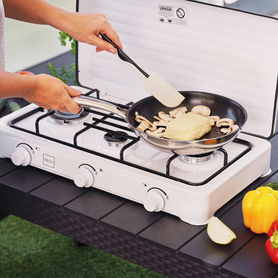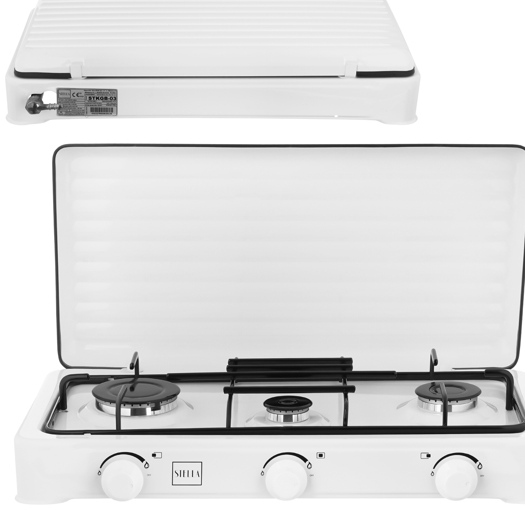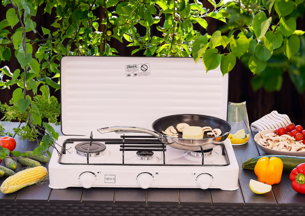 Kuchenka gazowa Stella STKGB-03 to wszechstronne urządzenie, które doskonale sprawdzi się podczas wszelkich wyjazdów na camping, biwaków oraz grillów w ogrodzie. Wyposażona w trzy palniki, zapewnia wygodę gotowania na świeżym powietrzu. Emaliowana powłoka ułatwia czyszczenie, a pokrywka zabezpiecza przed zanieczyszczeniami, gdy kuchenka nie jest używana.
