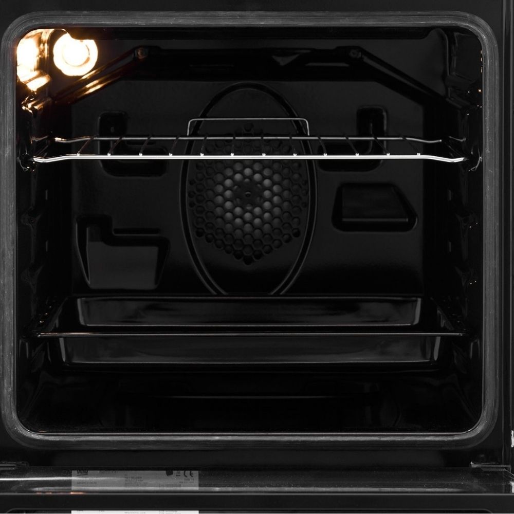 4 palniki gazowe o różnych mocach pozwalają gotować kilka dań jednocześnie, od podgrzewania po smażenie. Elektryczny piekarnik zapewnia równomierne pieczenie dzięki funkcji termoobiegu, idealny do ciast, zapiekanek czy pieczonego mięsa.