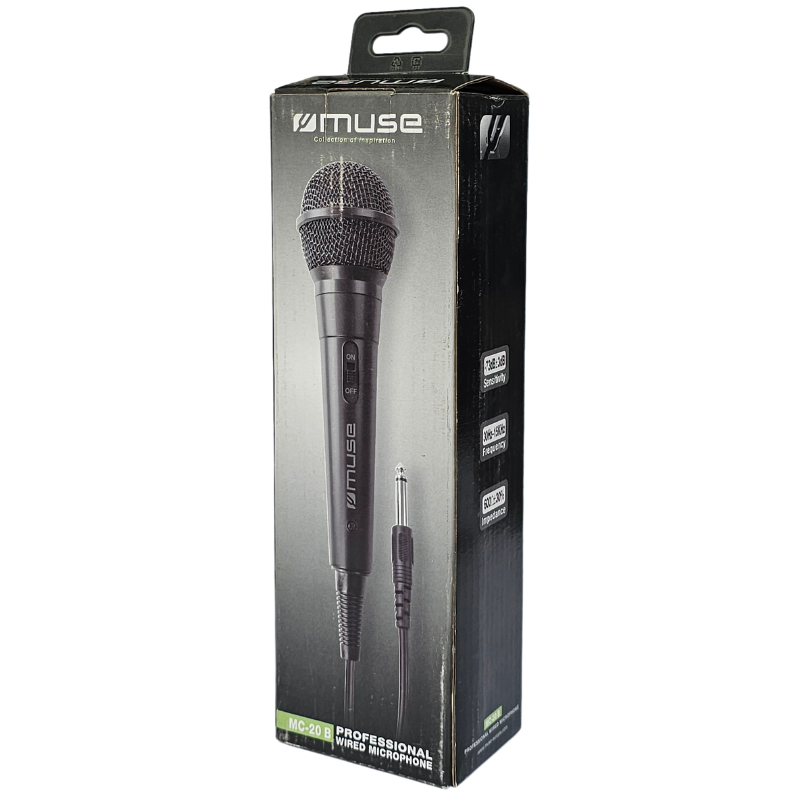 Dzięki wadze zaledwie 0,22 kg, mikrofon Muse MC-20B jest lekki i łatwy do przenoszenia. Kompaktowe wymiary (215 mm wysokości, 50 mm szerokości i 50 mm głębokości) sprawiają, że jest również wygodny w użyciu przez dłuższy czas, bez uczucia zmęczenia.