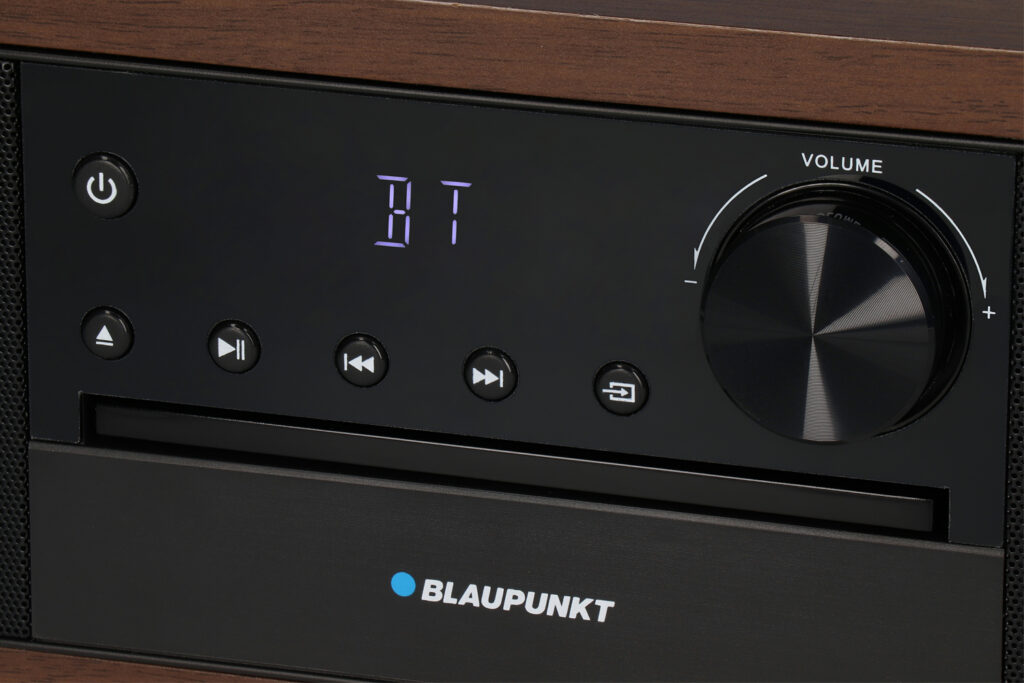 Mikrowieża posiada Bluetooth, dzięki czemu możesz bezprzewodowo odtwarzać muzykę ze smartfona, tabletu lub laptopa. Intuicyjny panel oraz pilot zdalnego sterowania sprawiają, że obsługa urządzenia jest szybka i wygodna. Wyświetlacz LCD informuje o aktualnych ustawieniach i utworach.