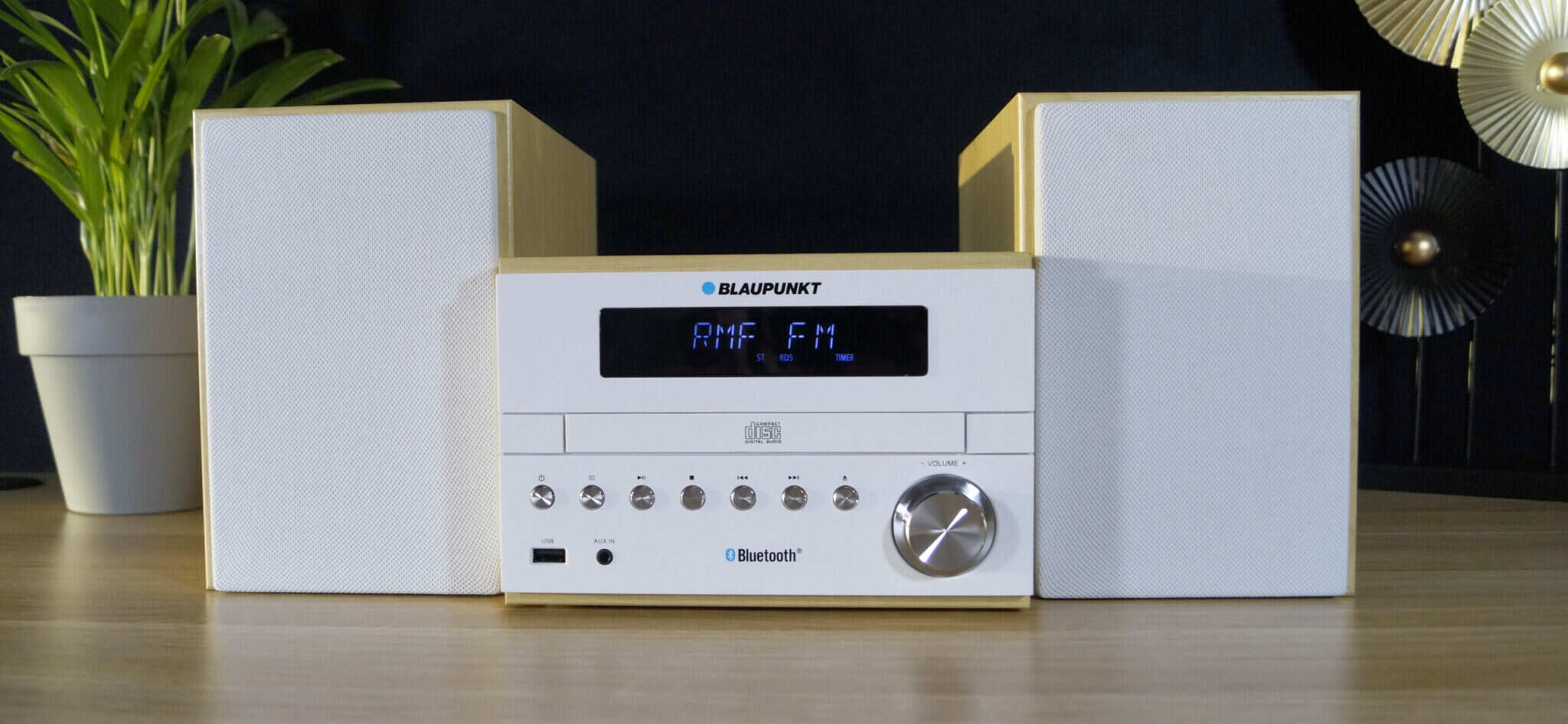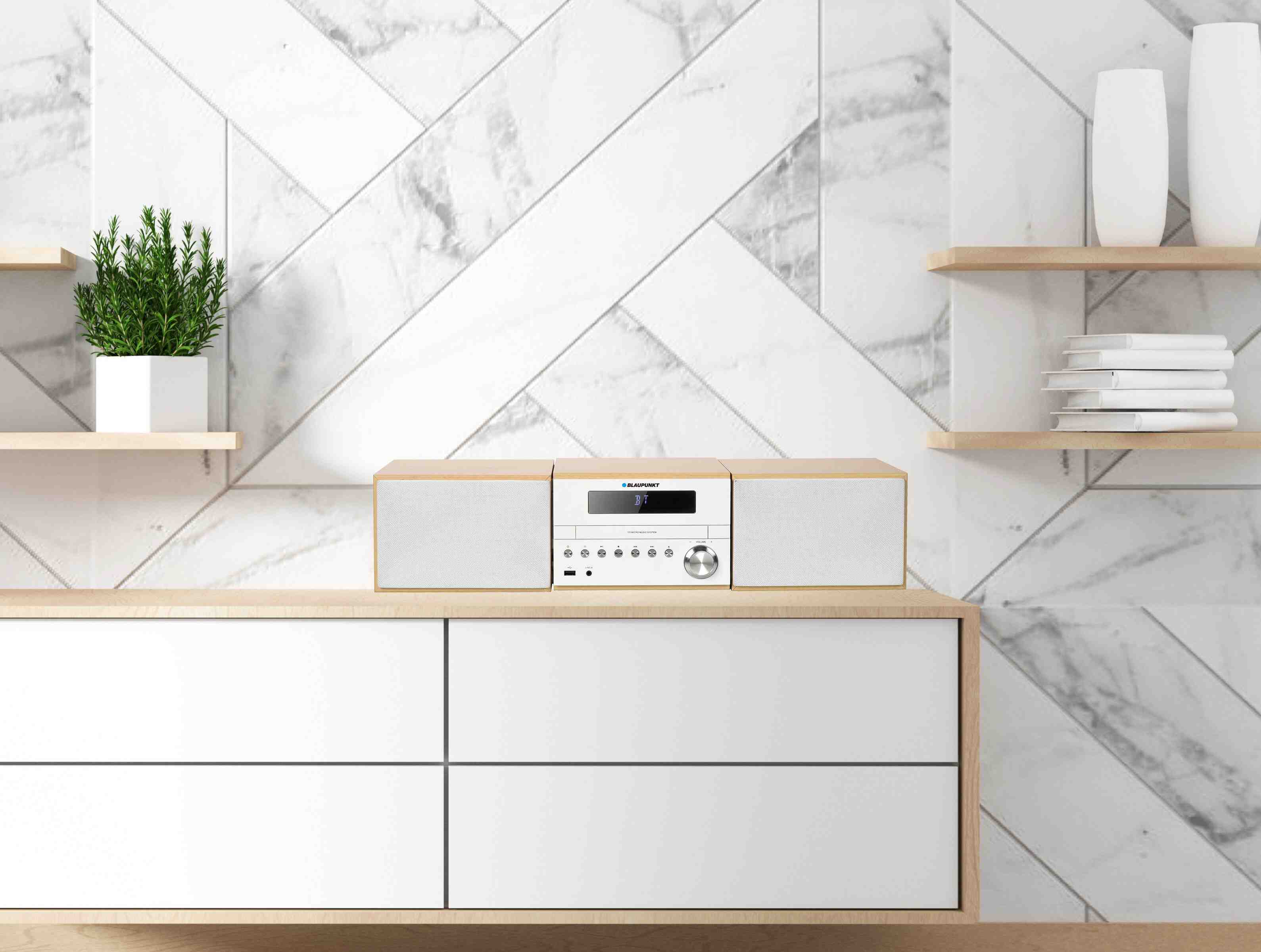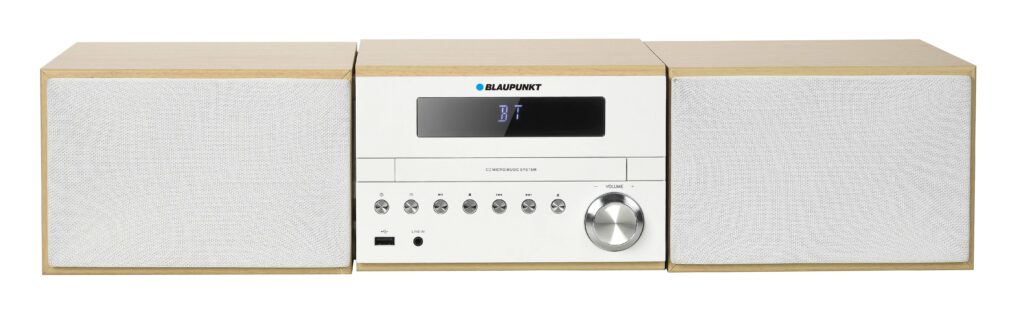 Blaupunkt MS45BT to kompaktowa mikrowieża, która łączy klasyczne odtwarzanie z nowoczesnymi funkcjami: Bluetooth, radio FM z RDS, USB i odtwarzacz CD (MP3/WMA). Dzięki temu możesz słuchać muzyki praktycznie z każdego źródła.