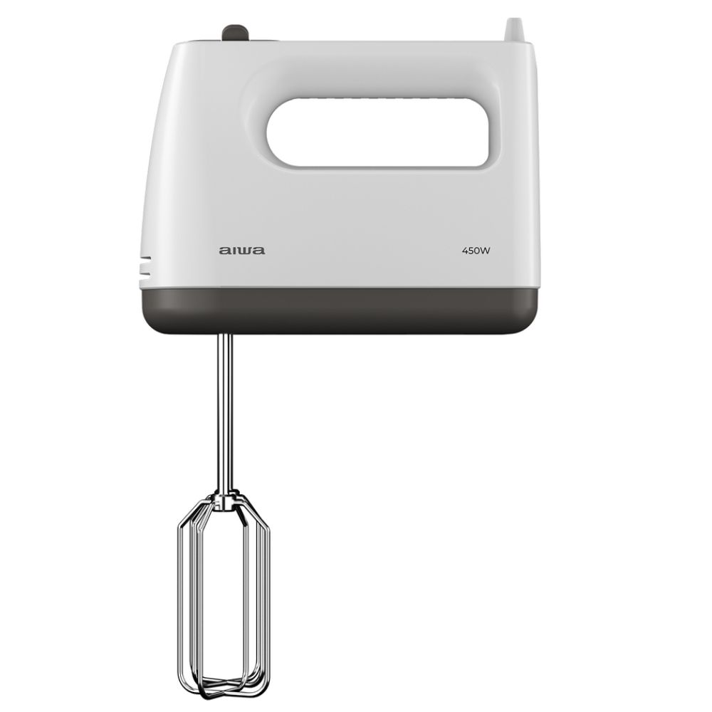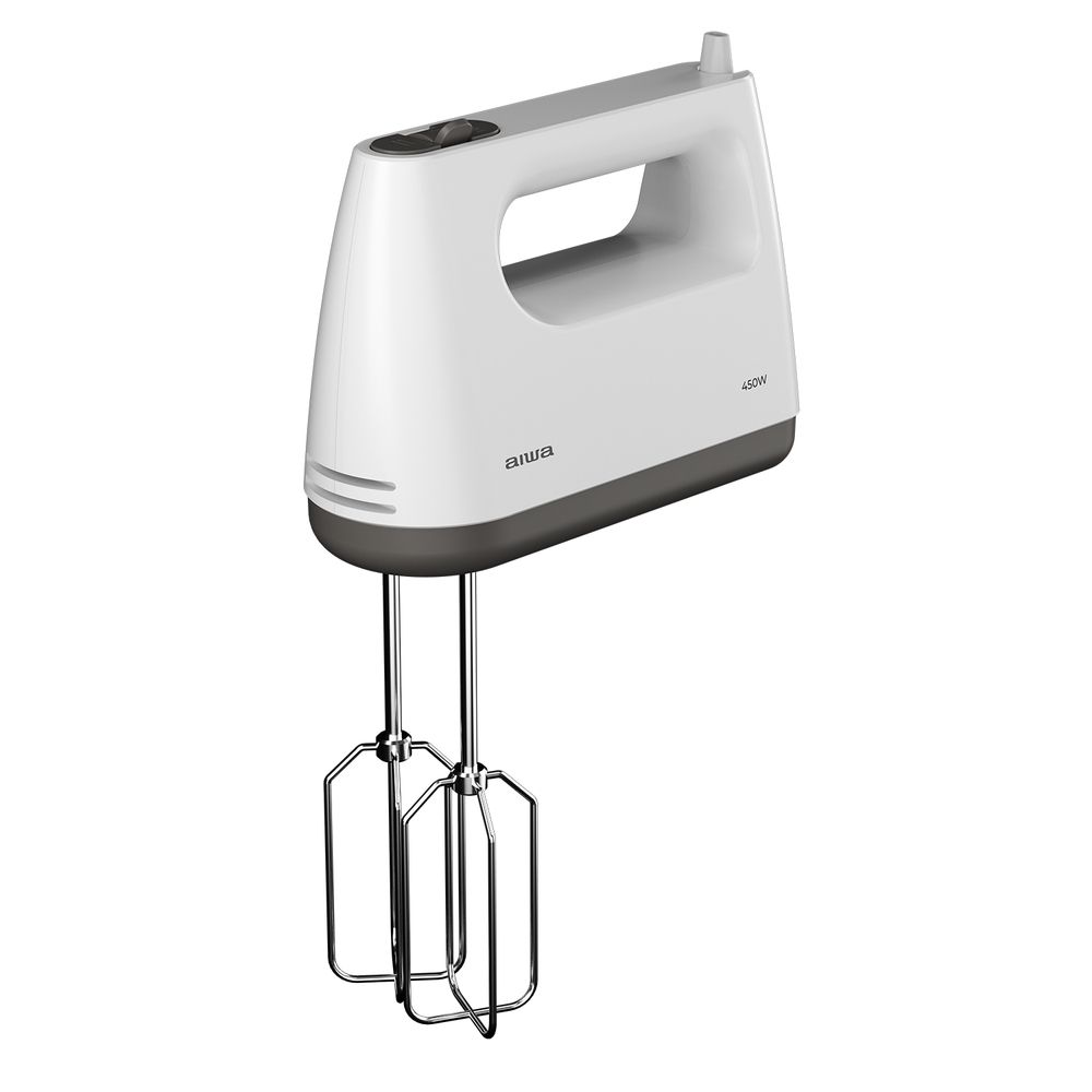Mikser ręczny AIWA AHX‑600 TeSABERU to urządzenie, które dzięki mocy 450 W oraz 5 poziomom prędkości + funkcji Turbo świetnie radzi sobie z szerokim zakresem zadań – od ubijania piany, przez mieszanie ciast, do wyrabiania cięższych mas.