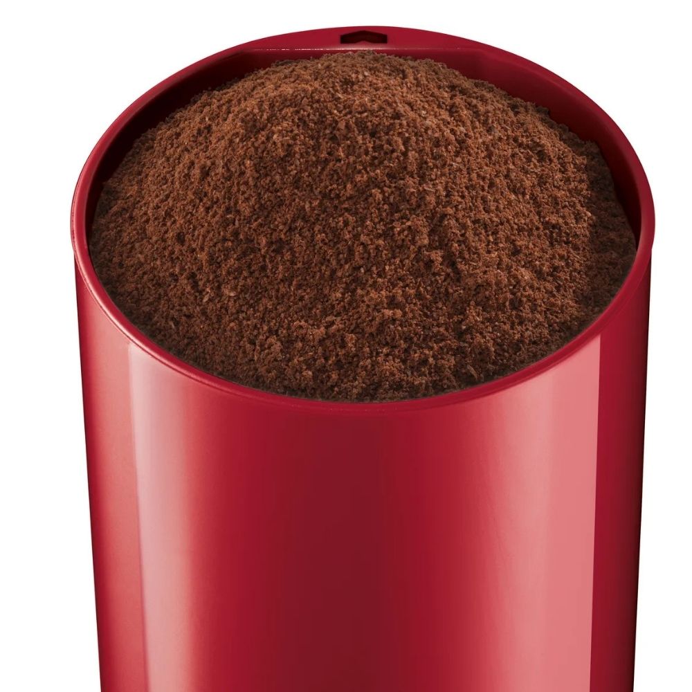Bosch TSM6A014R to kompaktowy, elektryczny młynek do kawy wyposażony w ostrze z stali nierdzewnej. Zaprojektowany do szybkiego przygotowania świeżo mielonej kawy, ale świetnie sprawdzi się również do przypraw czy orzechów – idealny do codziennego użytku w kuchni.