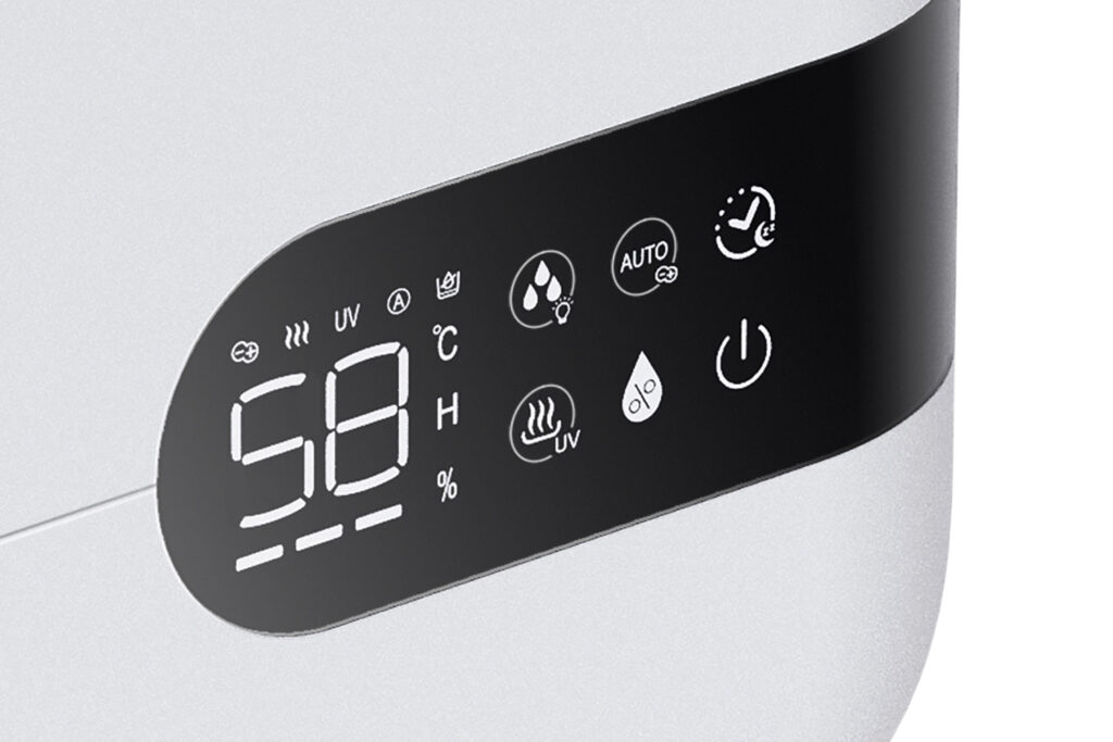 Dzięki czujnikowi Humidistat urządzenie monitoruje poziom wilgotności i automatycznie się włącza, gdy ten spadnie poniżej ustawionej wartości (zakres 40-80 %). Nie musisz ręcznie nadzorować działania.