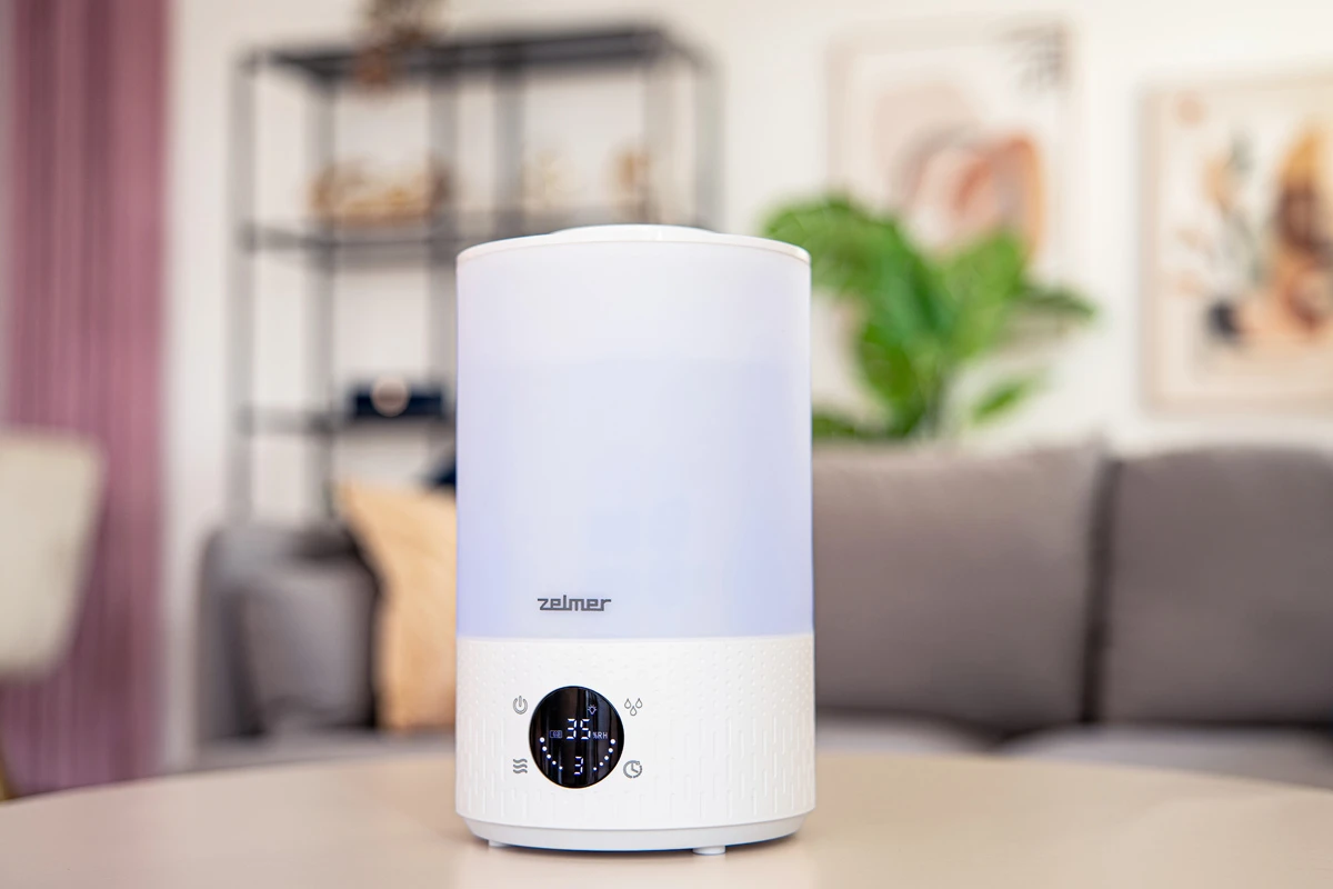 Model ZHH2800 oferuje: trzy poziomy pracy mgiełki, wybór czasu działania (timer), podświetlenie LED o 7 odcieniach, wbudowany sensor wilgotności (higrostat), cyfrowy wyświetlacz pokazujący temperaturę i wilgotność, a także pojemnik na olejek zapachowy, który pozwala zastosować aromaterapię.