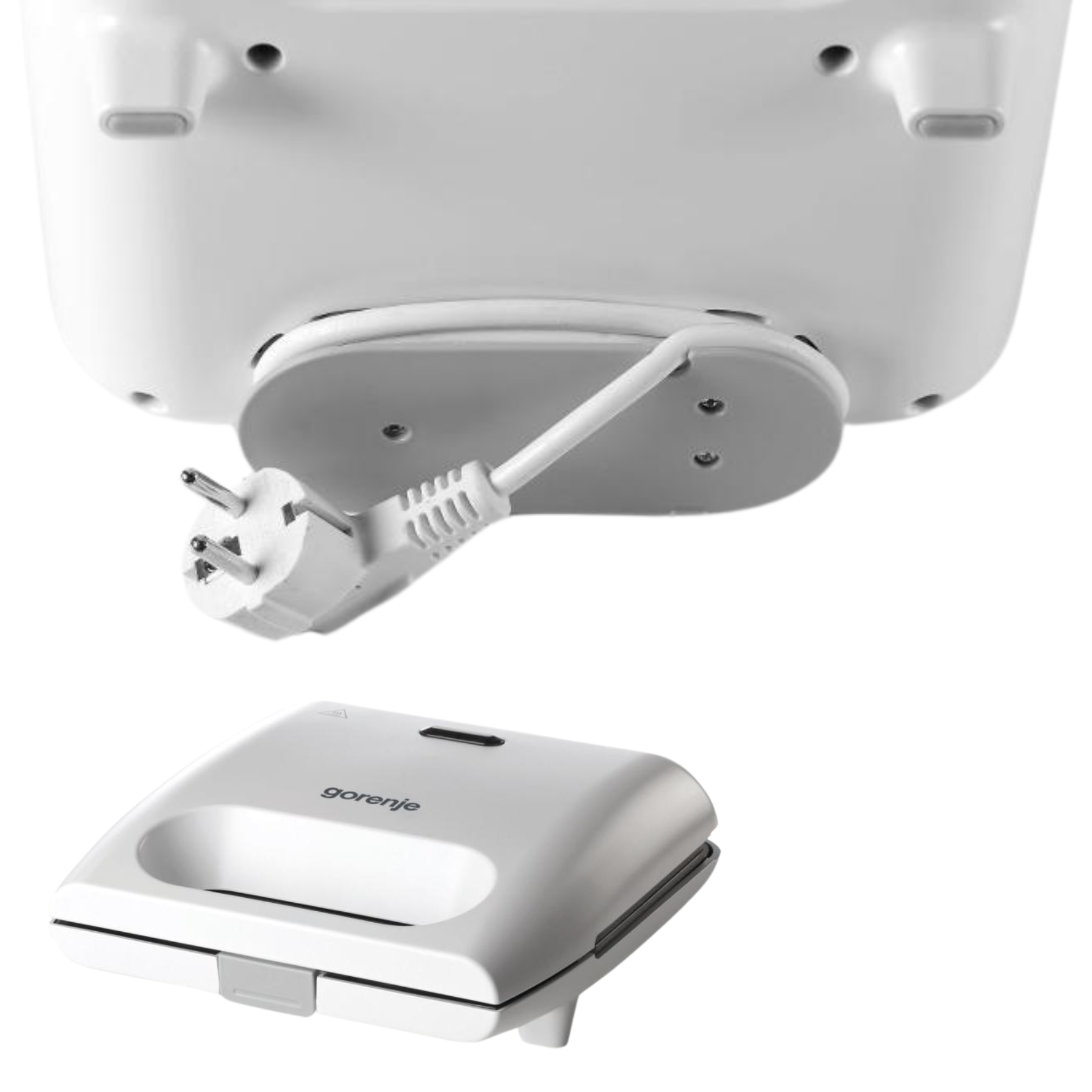 Dzięki kompaktowym wymiarom (22,8 x 9,5 x 22,7 cm) oraz możliwości przechowywania w pozycji pionowej, opiekacz Gorenje SM701GCW zajmuje niewiele miejsca w kuchni. Wbudowany schowek na przewód ułatwia utrzymanie porządku na blacie.