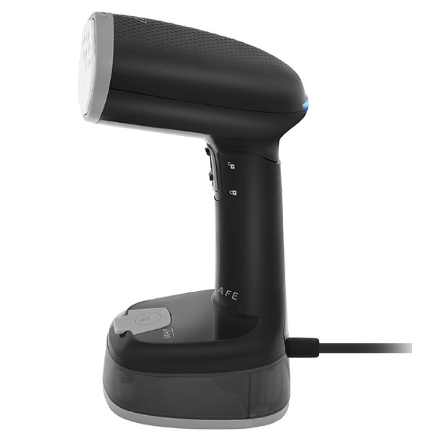 Dzięki mocy 1600 W i ciągłemu wyrzutowi pary na poziomie 15-25 g/min, parownica skutecznie usuwa zagniecenia, nie niszcząc delikatnych tkanin. Możesz cieszyć się idealnie gładkimi ubraniami bez potrzeby wyciągania deski do prasowania.
