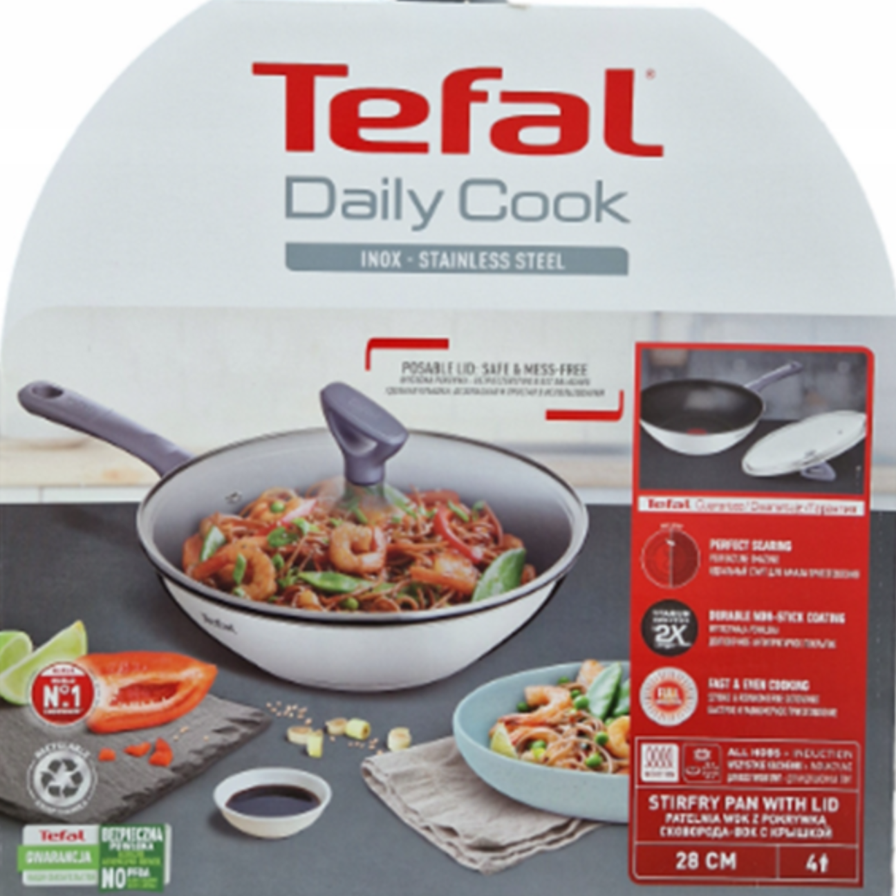 Wok Tefal został wyposażony w nowoczesną powłokę nieprzywierającą Titanium 2X, która nie tylko ułatwia smażenie, ale także znacznie przedłuża żywotność produktu. Ta innowacyjna powłoka jest dwukrotnie bardziej trwała niż standardowe rozwiązania, dzięki czemu można smażyć bez tłuszczu lub z jego minimalną ilością, zachowując pełen smak i zdrowotne właściwości potraw.