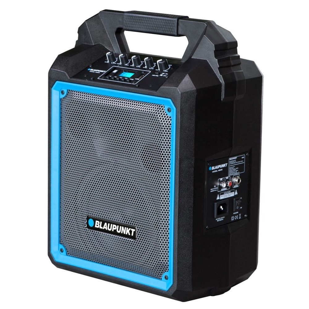 Power Audio Blaupunkt MB06 to przenośny system audio o mocy 500 W RMS, łączący jakość dźwięku hi‑fi z trwałą konstrukcją, dostosowany do użytku domowego i plenerowego. Wyposażony w Bluetooth, USB/SD, radio FM i funkcję karaoke – sprawdzi się na imprezach i przy spotkaniach towarzyskich.