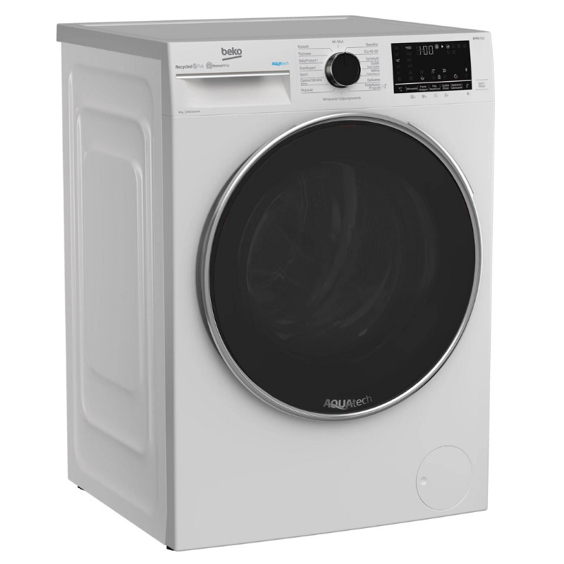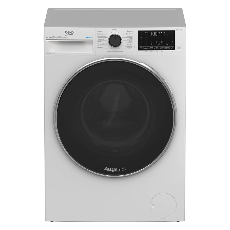 Pralka Beko B5WFU58408WDC to urządzenie stworzone z myślą o nowoczesnym stylu życia, w którym liczy się nie tylko skuteczność prania, ale także oszczędność czasu, energii i dbałość o delikatne tkaniny. Dzięki zaawansowanym technologiom, jak AquaTech, SteamCure czy silnik ProSmart Inverter, codzienne pranie staje się łatwiejsze, szybsze i bardziej efektywne. To doskonały wybór dla rodzin, osób aktywnych i wszystkich, którzy cenią sobie nowoczesne rozwiązania w domowym AGD.