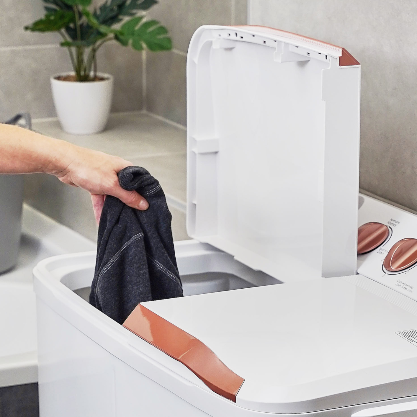 Pralko-wirówka Stella STDT-380 wyposażona jest w wygodne uchwyty boczne, które ułatwiają jej przenoszenie. Wąż spustowy oraz grawitacyjny system odprowadzania wody zapewniają prostotę użytkowania. Dodatkowo, wyłącznik czasowy oraz różne ustawienia czasowe prania i wirowania pozwalają na dokładne dostosowanie cyklu do indywidualnych potrzeb.