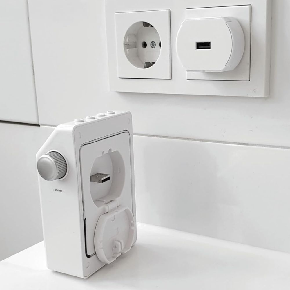 Radio ma niewielkie wymiary (85×40×122 mm), pokrętło głośności, podświetlany ekran LCD oraz estetyczną, białą obudowę – stylowe i praktyczne w każdym pomieszczeniu.
