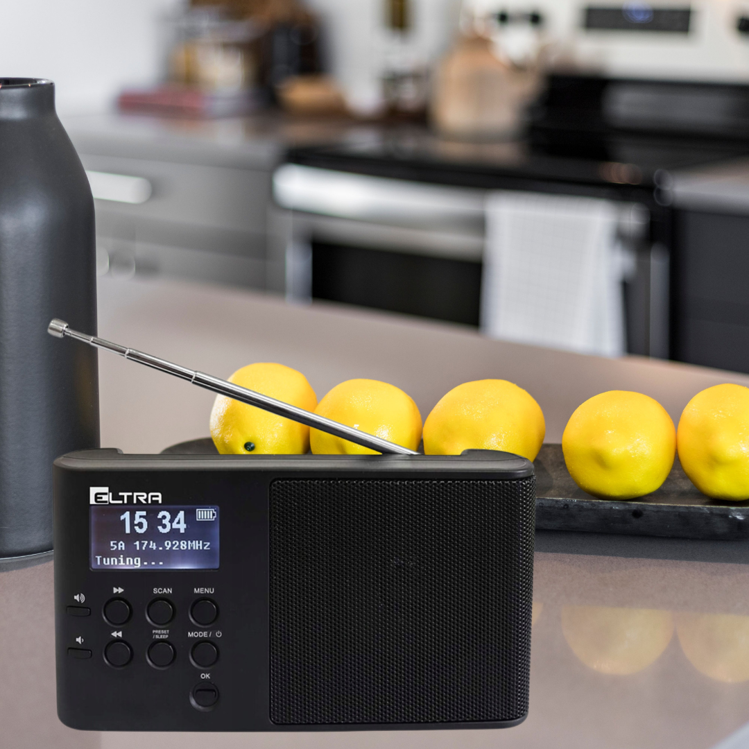 Radio Eltra Ula to kompaktowy, przenośny odbiornik, który doskonale sprawdzi się zarówno w domu, jak i w podróży. Obsługuje cyfrowe radio DAB+ oraz tradycyjne fale FM, co zapewnia dostęp do szerokiej oferty programów. Jego czytelny wyświetlacz typu matrix umożliwia szybki podgląd częstotliwości oraz dodatkowych informacji nadawanych w ramach systemu RDS. Dzięki temu radio gwarantuje nie tylko wysoką jakość dźwięku, ale i komfort użytkowania.