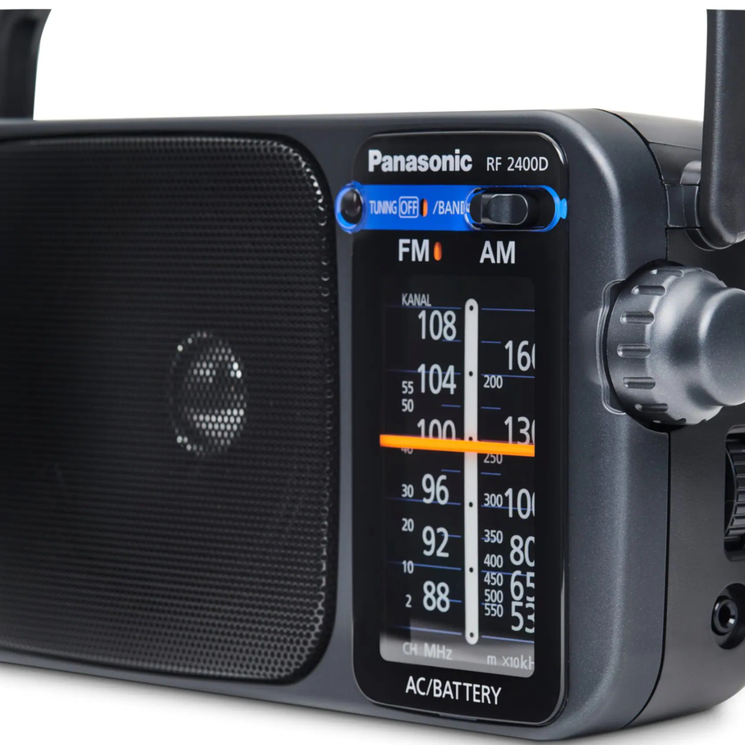 Wyposażone w dużej mocy głośnik, Panasonic RF-2400DEG-K oferuje wyraźny i czysty dźwięk, nawet w głośniejszych warunkach.