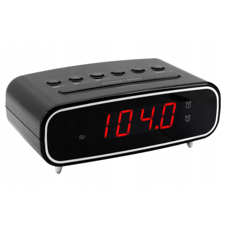 Elegancki i nowoczesny design – Pasuje do każdego wnętrza, kompaktowy i stylowy. Podwójny alarm – Możliwość ustawienia dwóch niezależnych budzików. Regulowany wyświetlacz LCD – Komfortowa widoczność godziny w dzień i nocą. Pamięć 10 stacji FM – Szybki dostęp do ulubionych rozgłośni. Funkcja zasypiania i drzemki – Wygodne opcje dla lepszego snu i porannego budzenia. Rezerwa mocy – Nie musisz się martwić o resetowanie godziny w razie braku prądu.