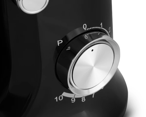 W zestawie znajdziesz hak do wyrabiania ciasta, dwie trzepaczki (do kremów i pian) oraz osłonę przeciwbryzgową. Wybierasz prędkość pracy w zależności od zadania — od lekkiego mieszania po intensywne wyrabianie cięższych mas. Przekładnia ślimakowa przekłada moc silnika na odpowiednią pracę mieszadeł, gwarantując wysoką skuteczność.