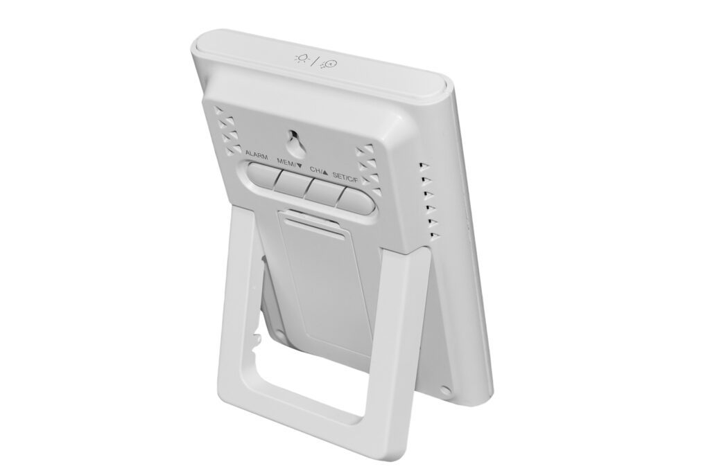 WS15WH oferuje zegar z kalendarzem i alarmem oraz funkcję drzemki. Możliwość obsługi do trzech czujników zewnętrznych pozwala monitorować warunki w różnych strefach domu, np. w ogrodzie, garażu lub piwnicy.