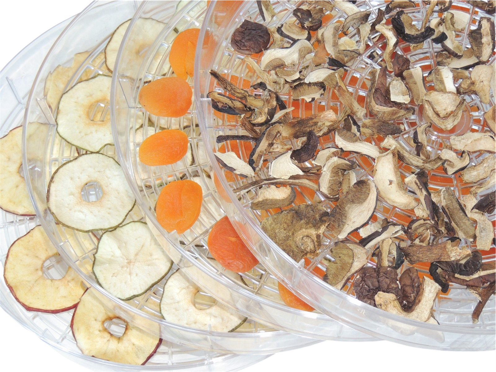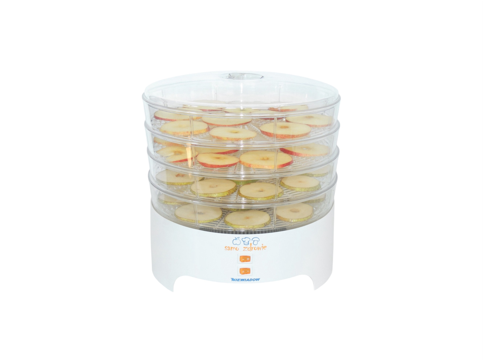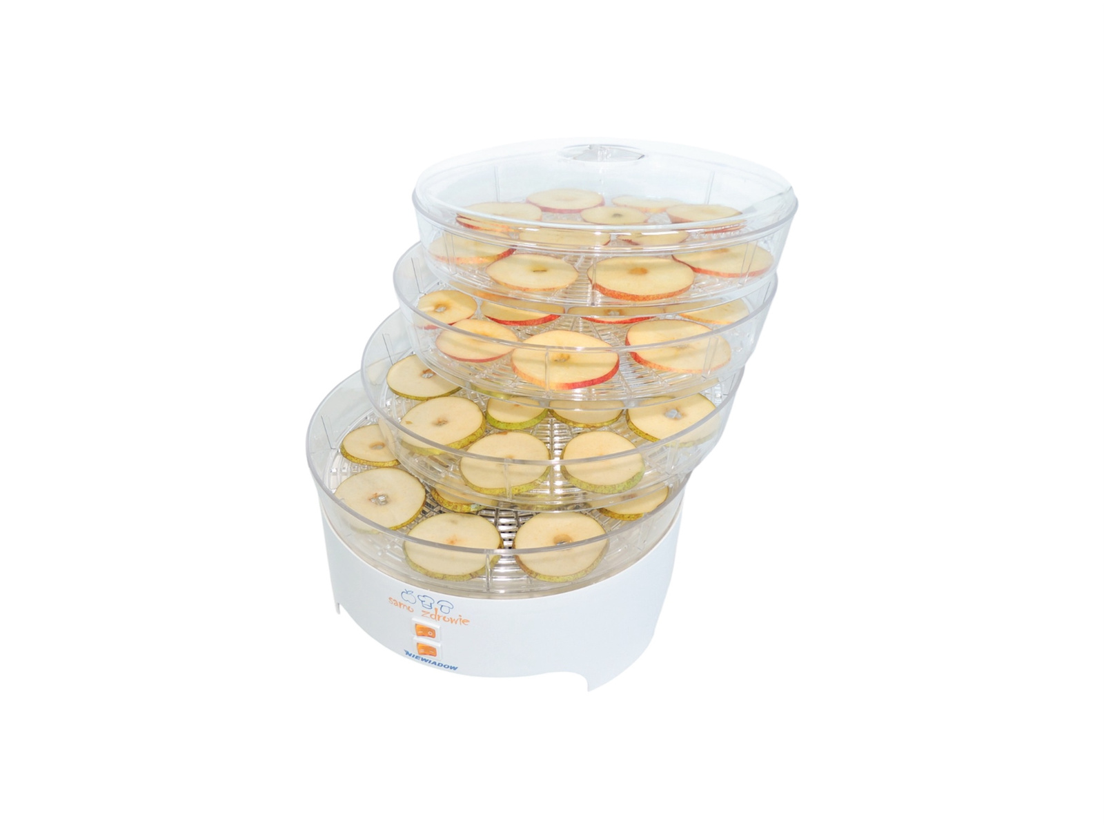 Urządzenie posiada 4 przezroczyste sita o średnicy 30 cm, które można rozbudować o kolejne poziomy. Dzięki temu jednorazowo wysuszysz większą ilość produktów – idealne rozwiązanie dla miłośników domowych przetworów.