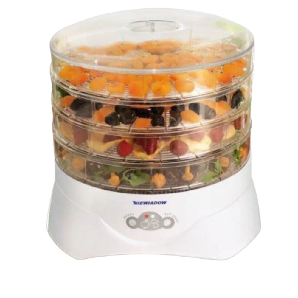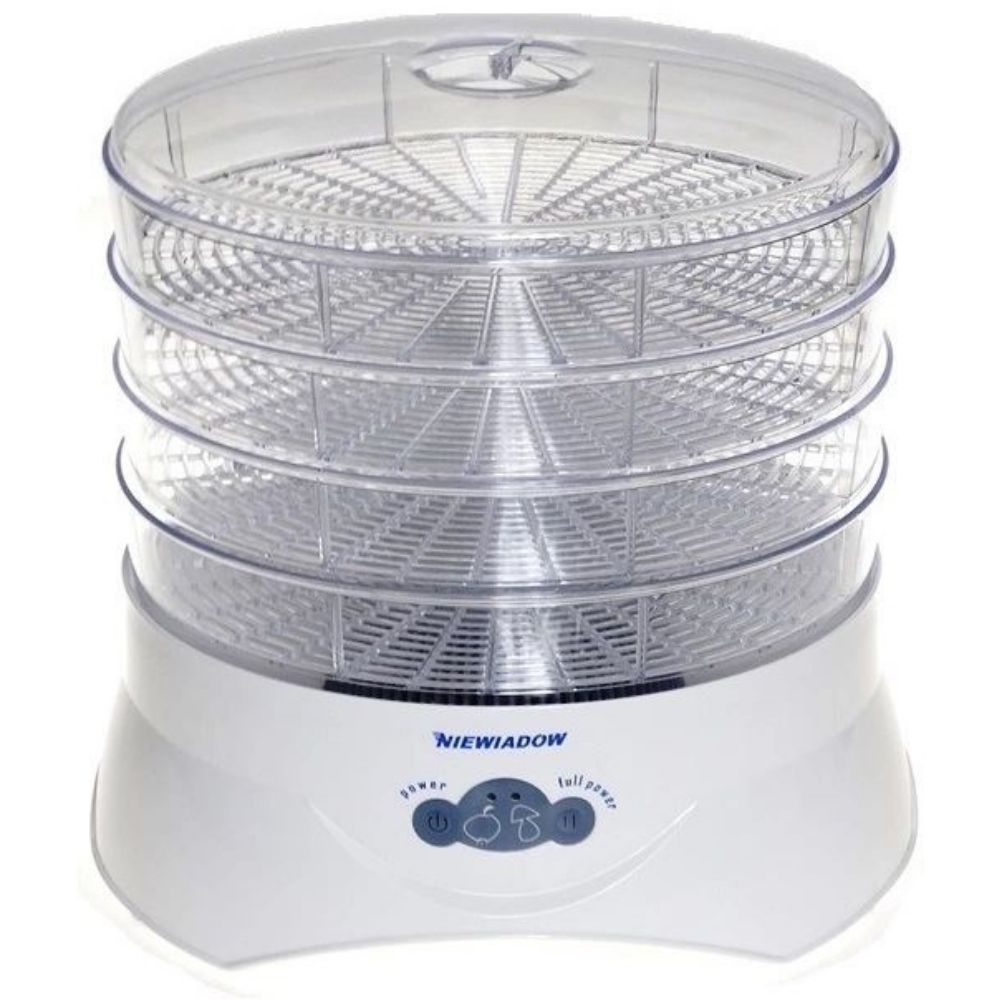 Niewiadów 972.04 to solidna, polska suszarka spożywcza przeznaczona do wieloetapowego suszenia owoców, warzyw, grzybów i ziół. Wyposażona w 4 przezroczyste tace o średnicy 30 cm, sterowanie mikroprocesorem gwarantuje równomierne suszenie przy optymalnej temperaturze dla zachowania wartości odżywczych i smaku