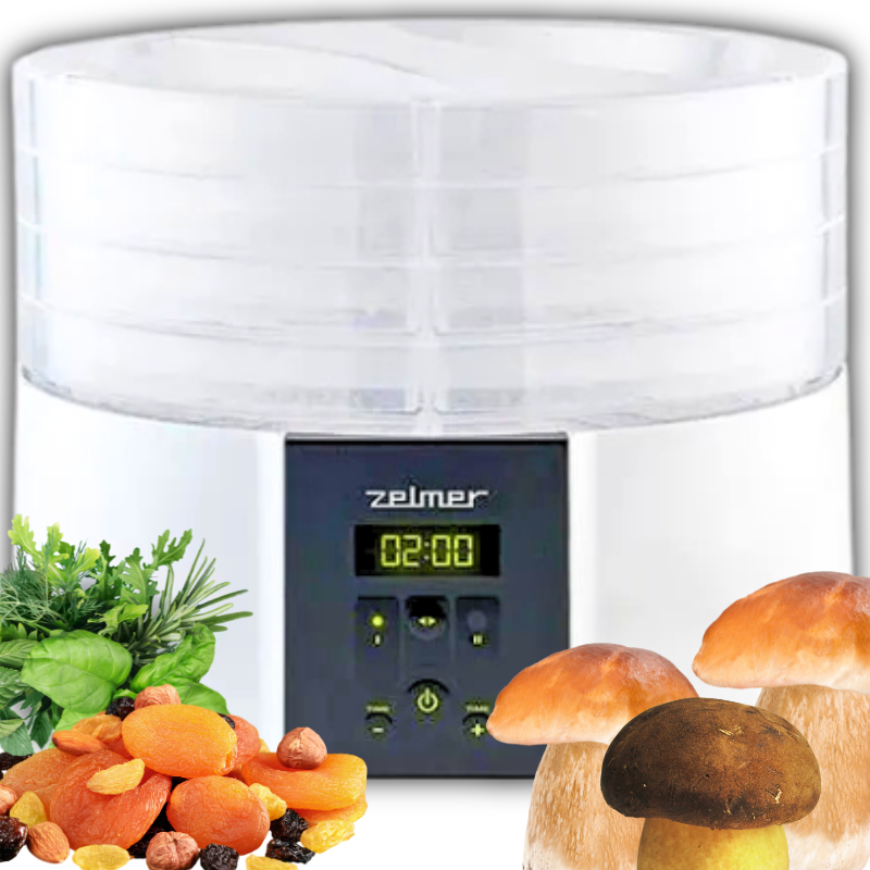 Suszarka spożywcza Zelmer ZFD2020 to doskonałe urządzenie do suszenia owoców, warzyw, grzybów i ziół. Dzięki mocy 520 W suszarka szybko i efektywnie usuwa wilgoć z produktów, pozwalając zachować ich naturalny smak i aromat. Twoje ulubione składniki będą gotowe do spożycia przez cały rok, bez potrzeby dodawania konserwantów.