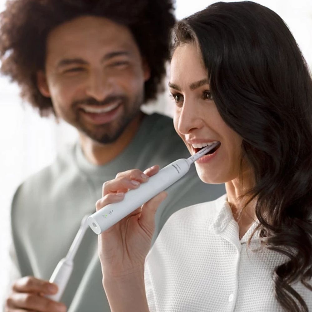 Szczoteczka ma smukłą, lekką budowę ułatwiającą trzymanie. Program Easy‑Start łagodzi przejście z manualnej do sonicznej przez pierwsze 14 dni.