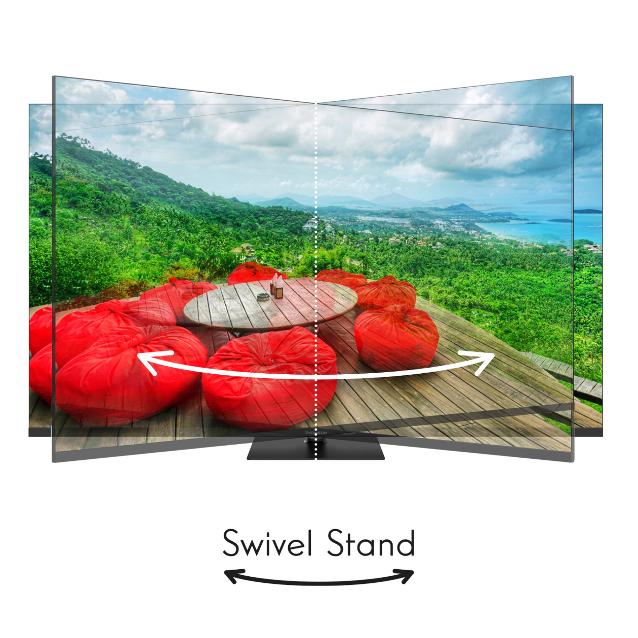 Obrotowa podstawa – Obrotowa podstawa telewizora pozwala na dostosowanie kąta widzenia, co zapewnia lepszą ergonomię oglądania i pozwala na optymalne ustawienie w różnych warunkach.