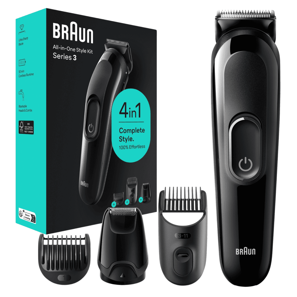 Zadbaj o swój wygląd w każdej sytuacji. Braun All-in-One Series 3 SK3400BLK to uniwersalny trymer stworzony z myślą o mężczyznach, którzy cenią dokładność, wygodę i oszczędność czasu. Jedno urządzenie pozwala na kompleksową pielęgnację brody, włosów i ciała – szybko, bezpiecznie i komfortowo.