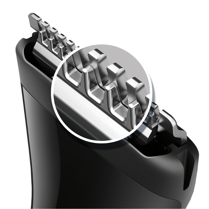 Trymer Philips Multigroom MG1100/16 z serii 1000 to kompaktowe i wszechstronne urządzenie, które umożliwia precyzyjne modelowanie, przycinanie i golenie zarostu. Wyposażony w technologię DualCut, precyzyjną golarkę oraz zestaw trzech nasadek grzebieniowych, zapewnia idealną kontrolę i efekt stylizacji. Dzięki zasilaniu baterią AA i wodoodpornej konstrukcji, trymer sprawdzi się zarówno w domu, jak i w podróży.